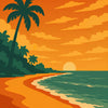 Playa, palmas y atardecer naranja. Un clásico de escapadas caraqueñas, ahora inmortalizado en estilo retro. Pura nostalgia con olor a salitre.