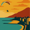 Arte impreso de La Guaira con costa, ciudad y parapente al atardecer. Póster costero ideal para decorar con esencia venezolana, perfecto para amantes del mar, los deportes y la estética vintage.