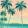 Arte impreso de Isla Margarita con palmeras y playa al atardecer. Póster retro que transmite paz, nostalgia y vacaciones infinitas. Perfecto para ambientar espacios con inspiración caribeña.