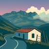 Montañas, niebla y techos rojos. Una carretera andina serpentea hacia la casa típica merideña, enmarcada por los picos de los Andes. Este print es frío, cálido y mágico a la vez.